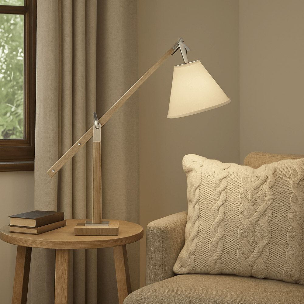 The functional Bloomingdales Weathered Oak Table Lamp combines earthy timber tones with dark, bold bronze detail. With an adjustable arm and lampshade, this floor lamp is great for by a lounge or behind your couch.