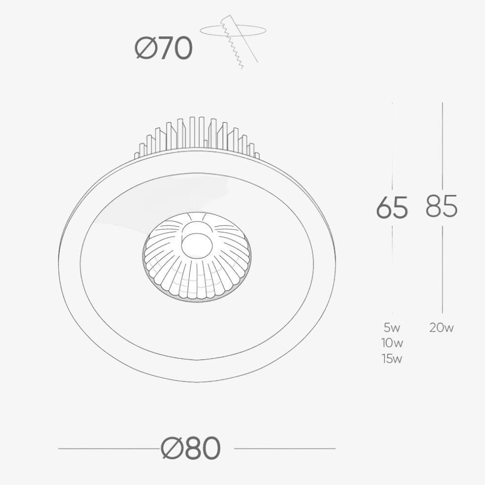 | Dimensions Ø80mm x H65mm Cutout Ø70mm |