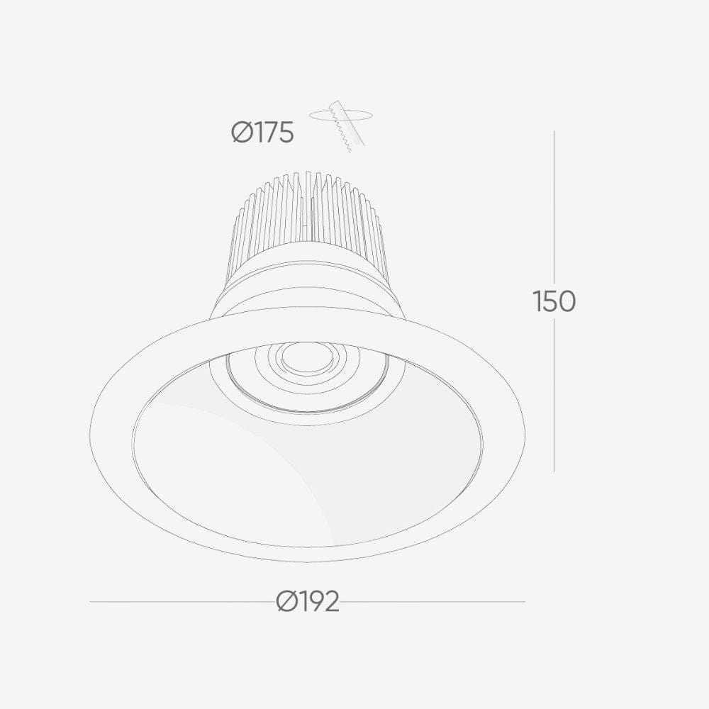 | Dimensions Ø192mm x H150mm Cutout Ø175mm |