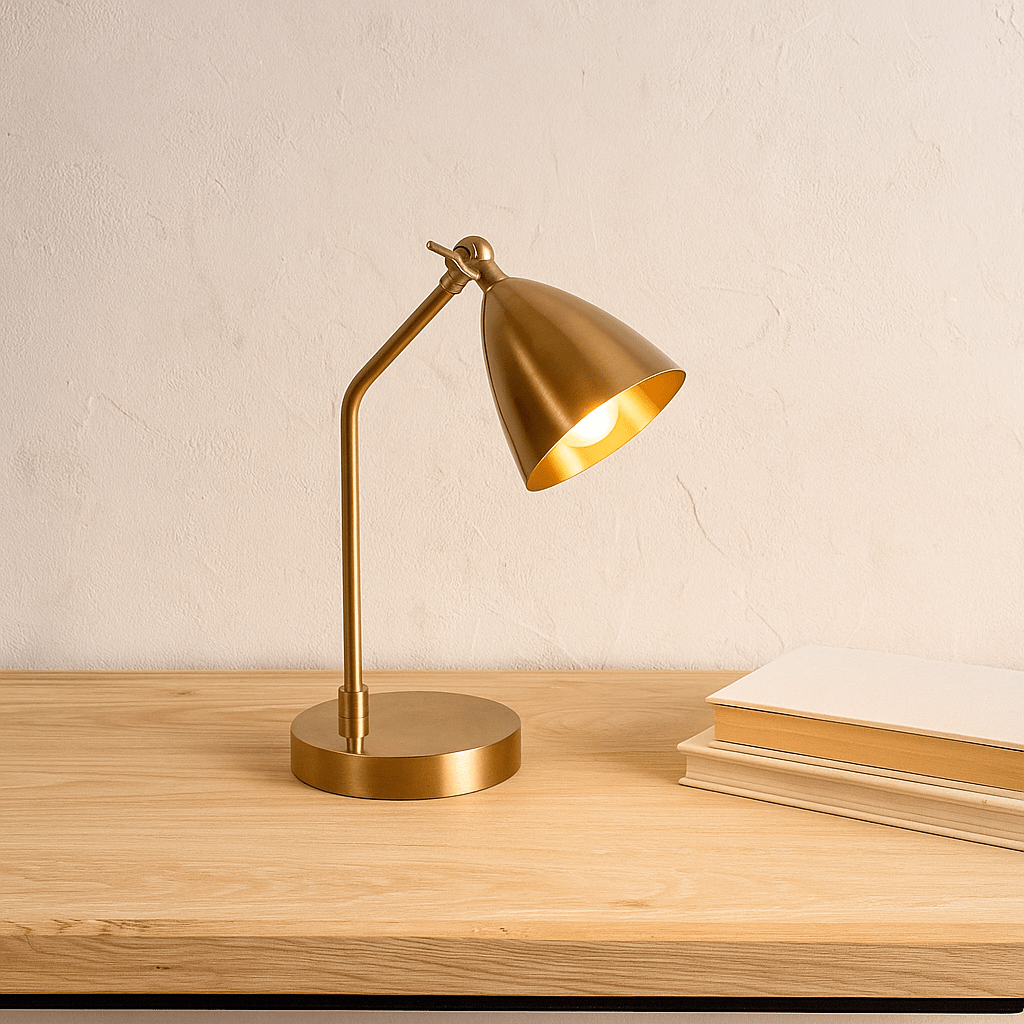 Our Hastings is industrial and vintage desk lamp that made from solid brass, perfect companion for study desk in any room. The lamp has adjusted joint at the top next to metal shade to allow you to focus light exactly where you want it.