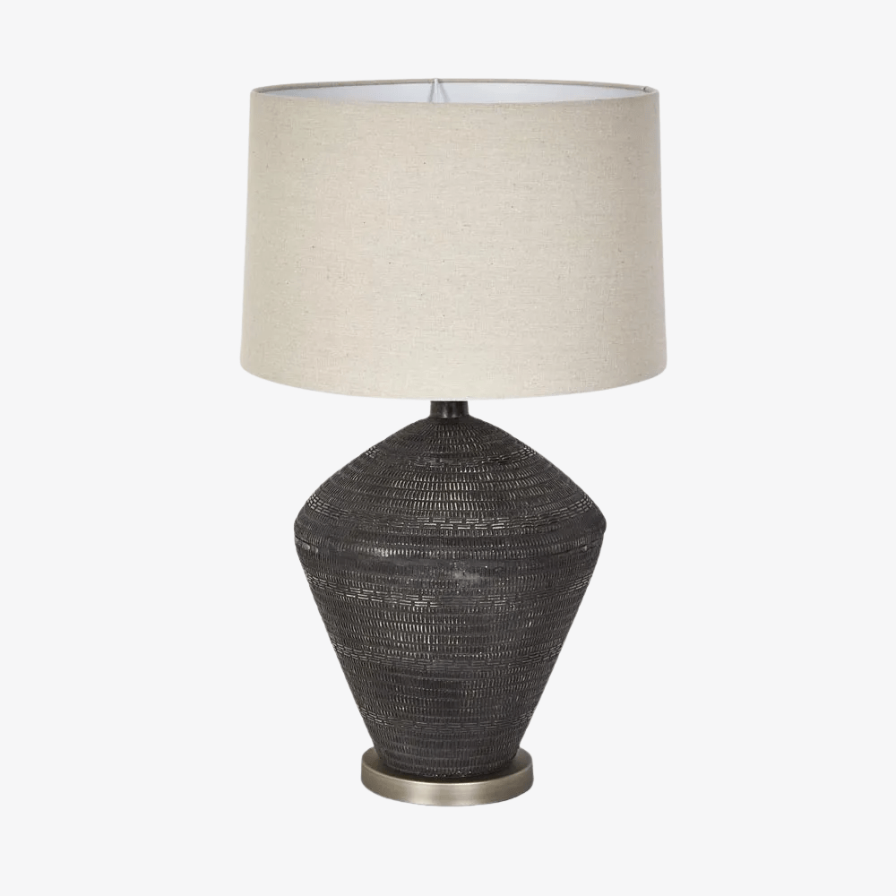 Meridien Black Lamp with Natural Linen Shade crafted from nan, offering a versatile charm. This piece is suitable for various settings.