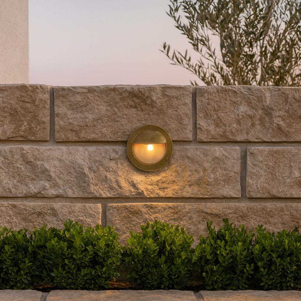 The Begawan outdoor wall light will add a touch of industrial aesthetic to any space with its shallow profile design. Made from brass, this circular outdoor wall light is clean and simple, creating a subtle and discreet soft lighting effect.