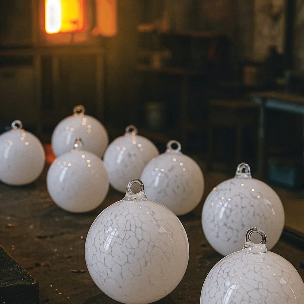 A stunning cluster of hand-blown art glass spheres adorns Marabel’s luxe design, creating an elegant shade of enchanting illumination as warm light is diffused from candelabra lamps. The conical metal frame in a classic Distressed Brass finish provides a complement to the crackled white globes.