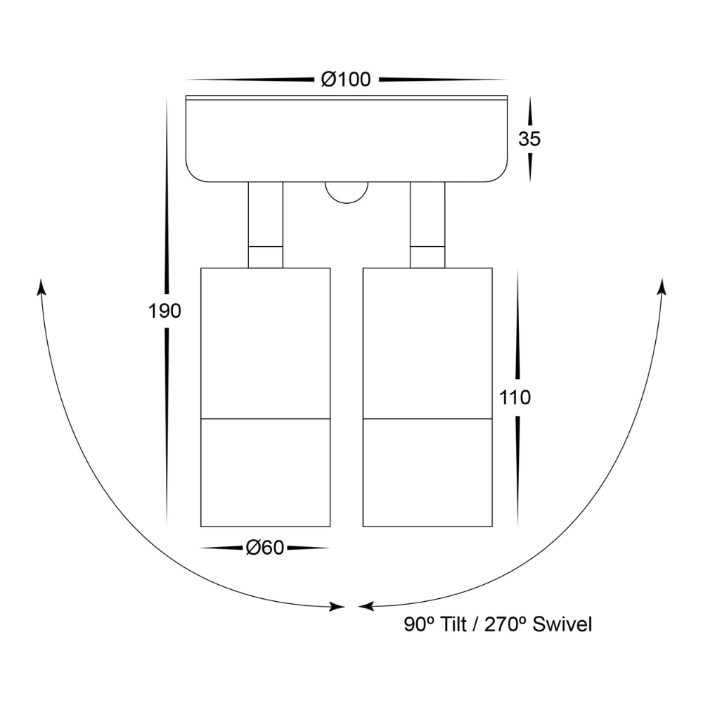 Colour Temperatures 3000K - 2 x 200-560lm 4000K - 2 x 255-595lm 5500K - 2 x 270-630lm |