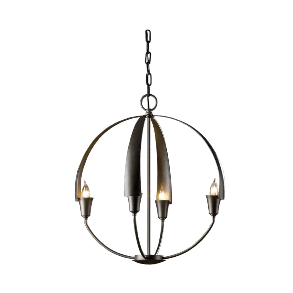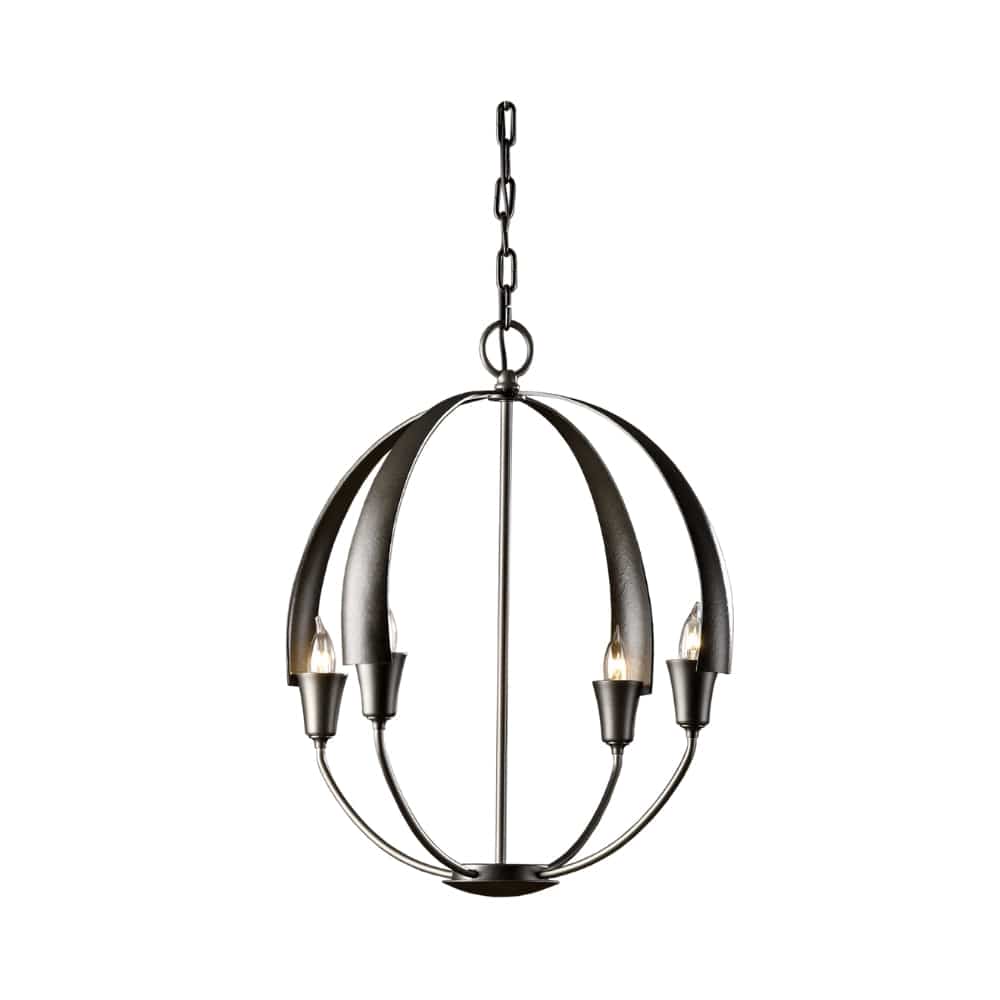 There's no need to make a choice between form and function - as part of the Cirque Collection, this chandelier delivers both. Four hand-forged, tapered steel petals merging at the sculpture's apex set the stage for our re-interpretation of the classic orb chandelier.