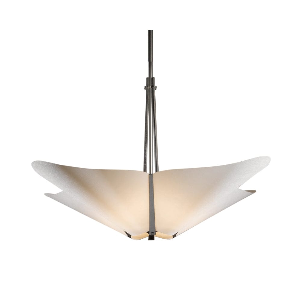 Kirigami is the Japanese art of folding and cutting paper. The shape of this pendant's shade and the way the hand-forged steel supports the shade, deliver a modern look that borrows inspiration from an ancient art form. Handcrafted by Vermont artisans.