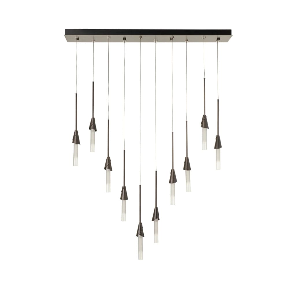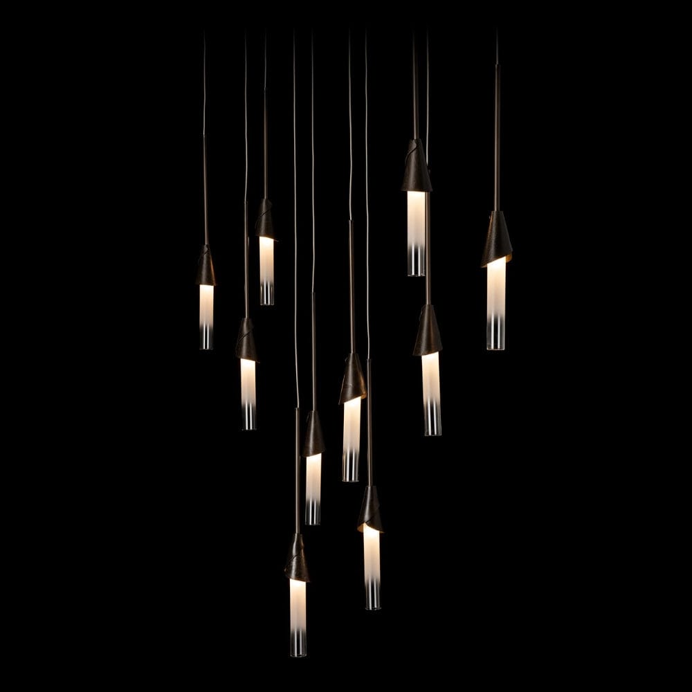 Great downward light with the ability to stagger or align individual pendants, the Lilium 10-Light Linear Pendant displays beauty in the details. Hand-forged and turned "cups" top the delicate cylindrical ombre glass shades. Elegant and stylish, the Lilium brings sophisticated simplicity to any space.