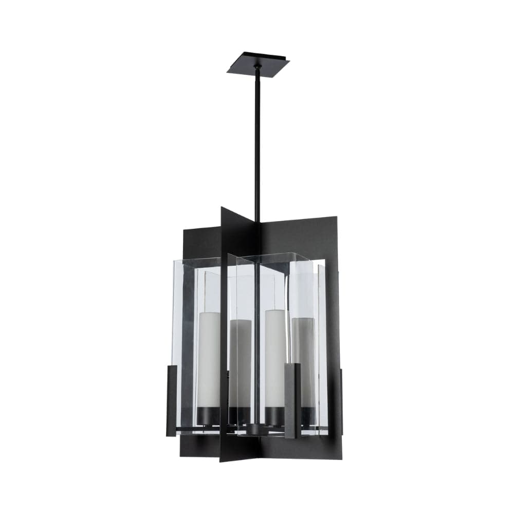 Looking for a traditional lantern with a contemporary twist? The Summit is a large scale interior lantern featuring four lit frosted cylinders within large, clear vertical rectangular glass. Intersecting steel plates give a modern, dramatic feel, with both glass and steel elements having clean 90º angles.