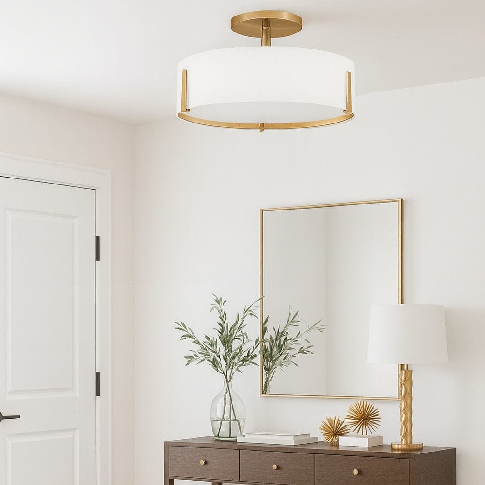 A transitional staple, Halle’s simple yet stunning Off-White Linen drum shade features an elegant Etched White glass diffuser. A minimal three-pronged frame is finished in a complementing Black or Lacquered Brass finish to easily accompany both modern and traditional décor styles.