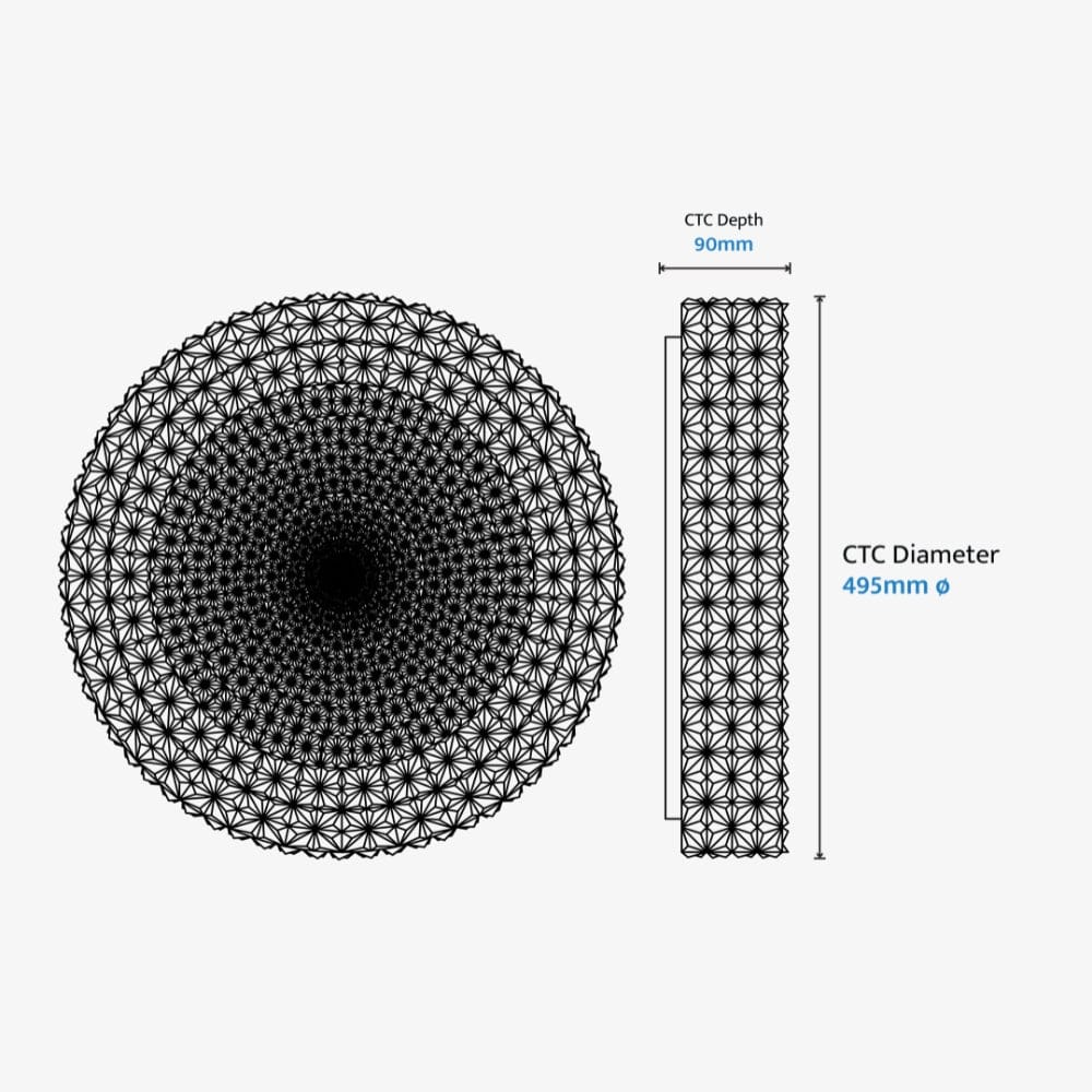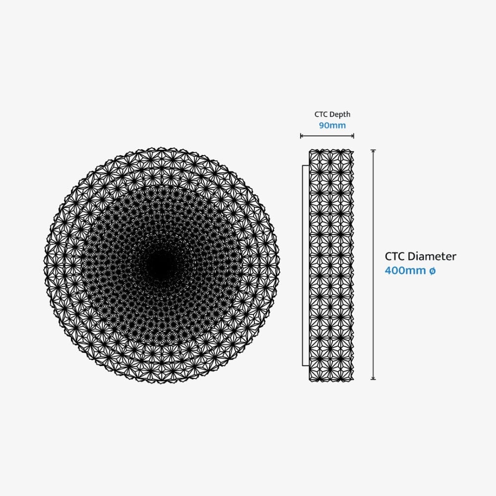 Dimensions Small: Ø400mm x P90mm Medium: Ø495mm x P90mm |
