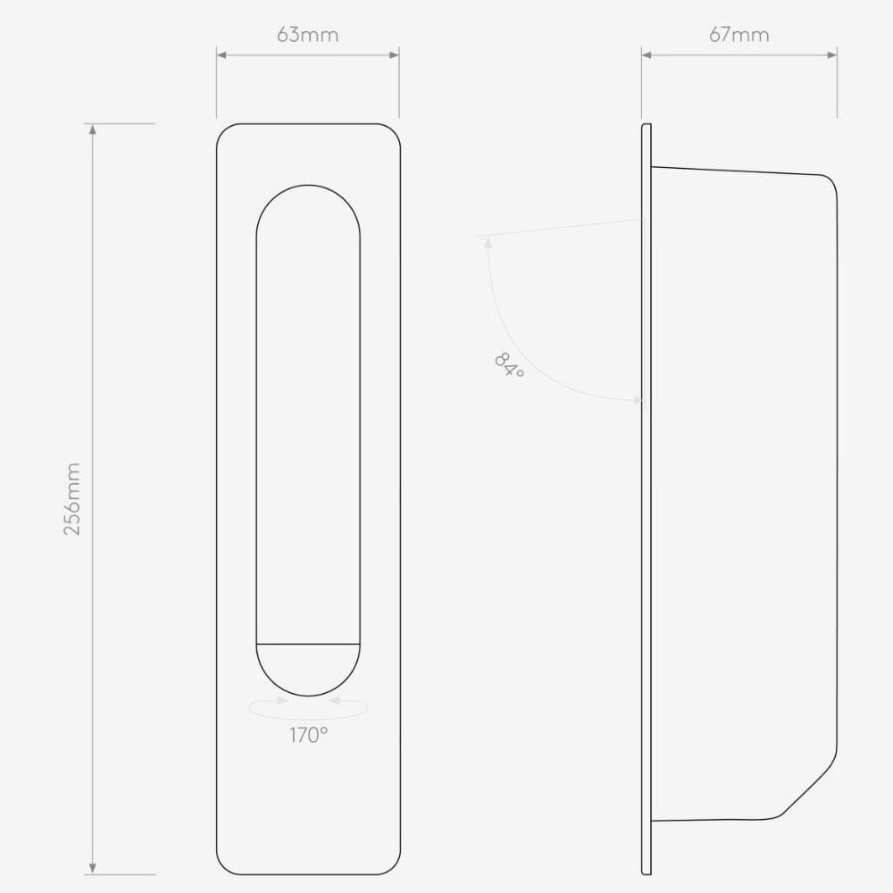Dimensions H256mm x W63mm x D67mm Cut Out: L227mm x W52mm x Ø52mm/ 2-1/16 |