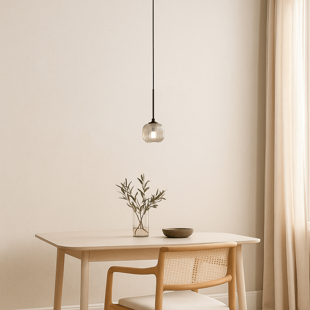 This early century ribbed barrel glass gives a minimalist allure and sleek style for any space in your home. The BOBO collection is best illuminated with a LED twinkle globe accentuating the ribbed surface of the shade. The family includes a 1 light pendant, 1 light wall lamp, 1 light table lamp,2 light table lamp, 4 light bar pendant, 5 light round pendant and 10 light round pendant. Available in Antique gold with opal matt shade or black with smoke.