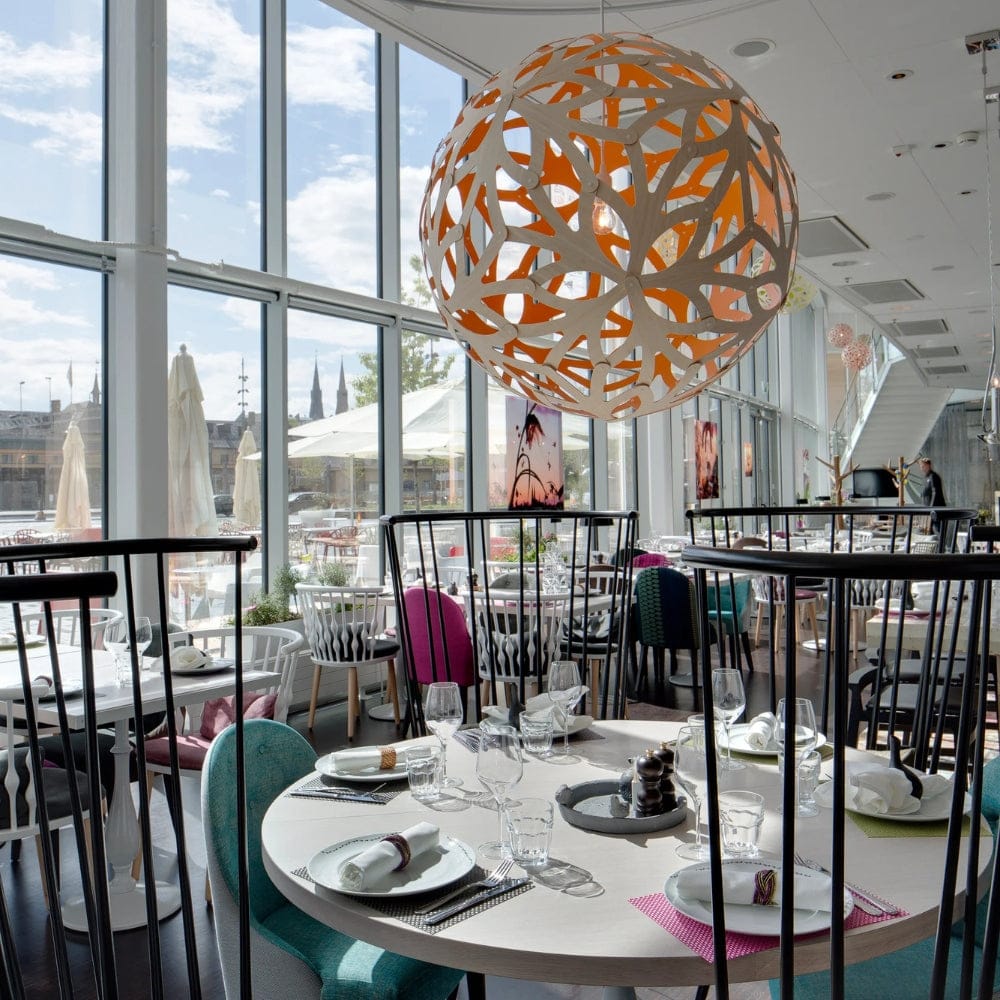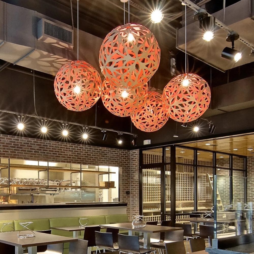 Floral was designed three years after Coral light which is based on geometric polyhedra forms. Floral was designed to offer a softer more decorative offering alongside Coral which is more structured.