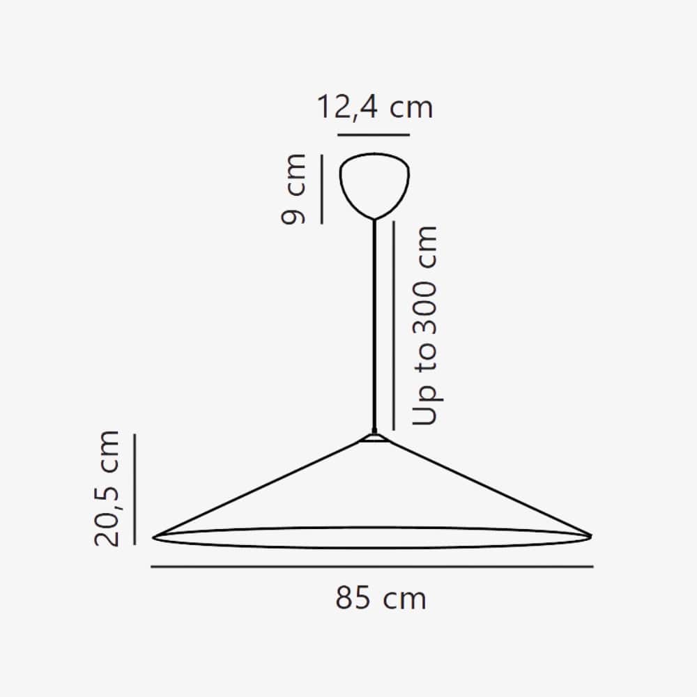 Dimensions Ø850mm x H205mm Suspension: 3000mm |