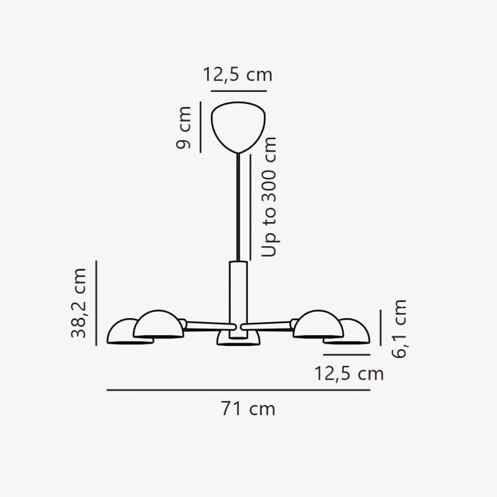 Dimensions H380mm x Ø125mm x W710mm Suspension Length: 3000mm |