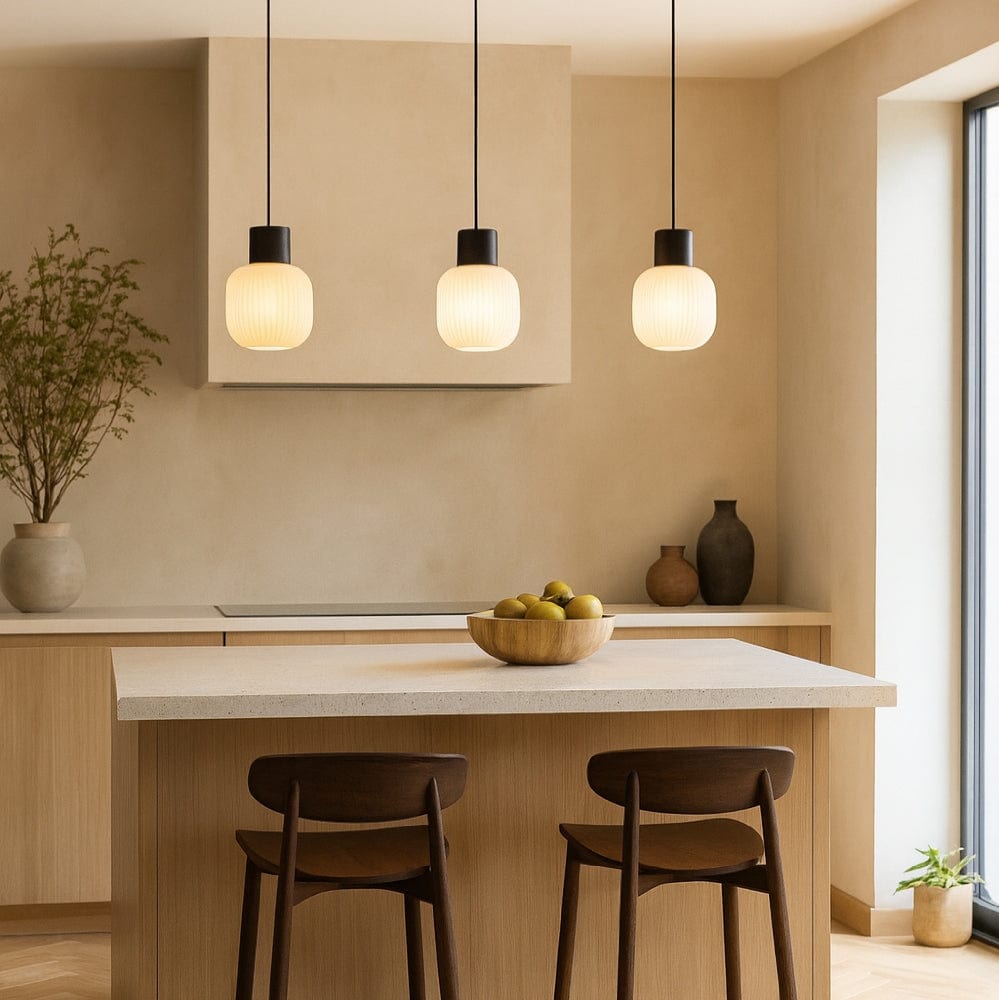 The Nori family is inspired by the traditional lanterns and now on offer with a modernist interpretation. Three unique mouth-blown glass shapes are patterned with a soft ribbed surface that provides a subtle atmospheric light. The glass is offered in opal matt, the metalware is a rich satin black, while the pendants are suspended with textile cable. Available as single and multi-light pendants and as a floor and table lamp.