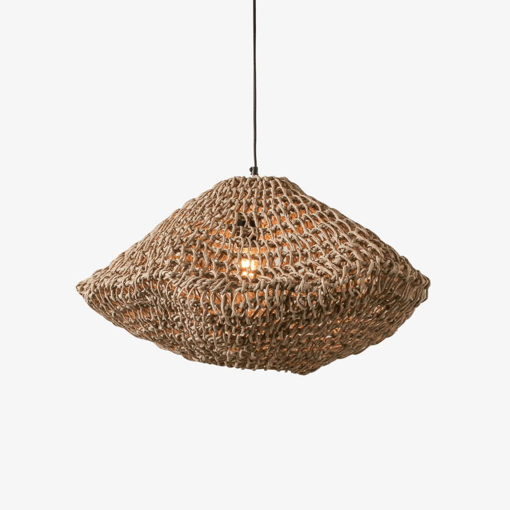 With its wide, elliptical shape and loosely cloud-like structure, the Stratus Pendant floats with a sense of gentle drift. It softens a space both visually and atmospherically — perfect above a round dining table, over a relaxed seating area, or in a nursery where serenity is key. Its handmade weave diffuses light in a way that feels both sculptural and soft.