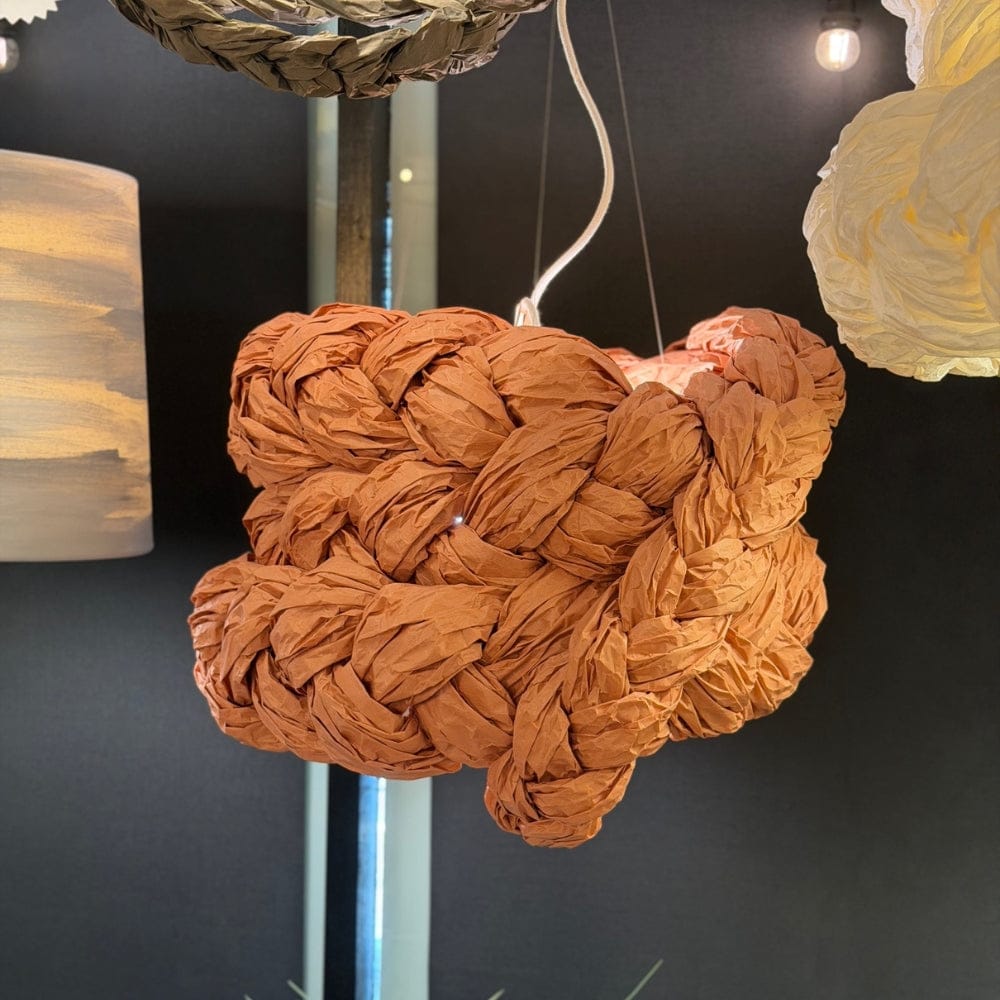 Entirely handmade, each Bride lamp has her own braid pattern and unique personality. Each lampshade interacts with the light and space uniquely, providing highly emotional lighting design. These lamps provide diffused lighting.