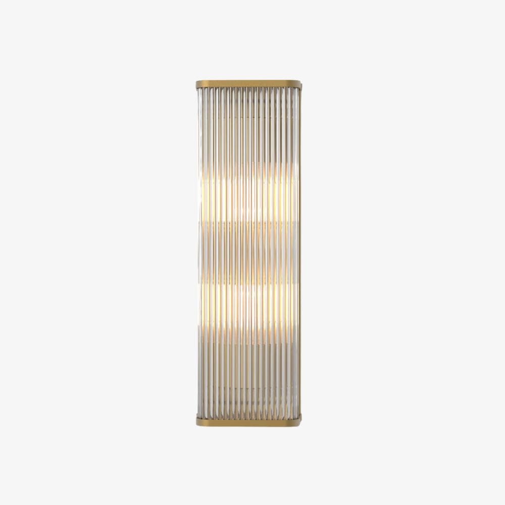 Inspired by Art Deco luminaires, the Avignon Square 500 wall light is large in scale adding instant drama and presence to a space. Tall and slender with a crisply defined profile, it features sparkling clear glass rods, die-cast antique brass end caps and exudes ambient, glare-free illumination. Designed with hospitality settings in mind, the light fixes to the wall with a single discreet screw, so nothing distracts from its seamless look.