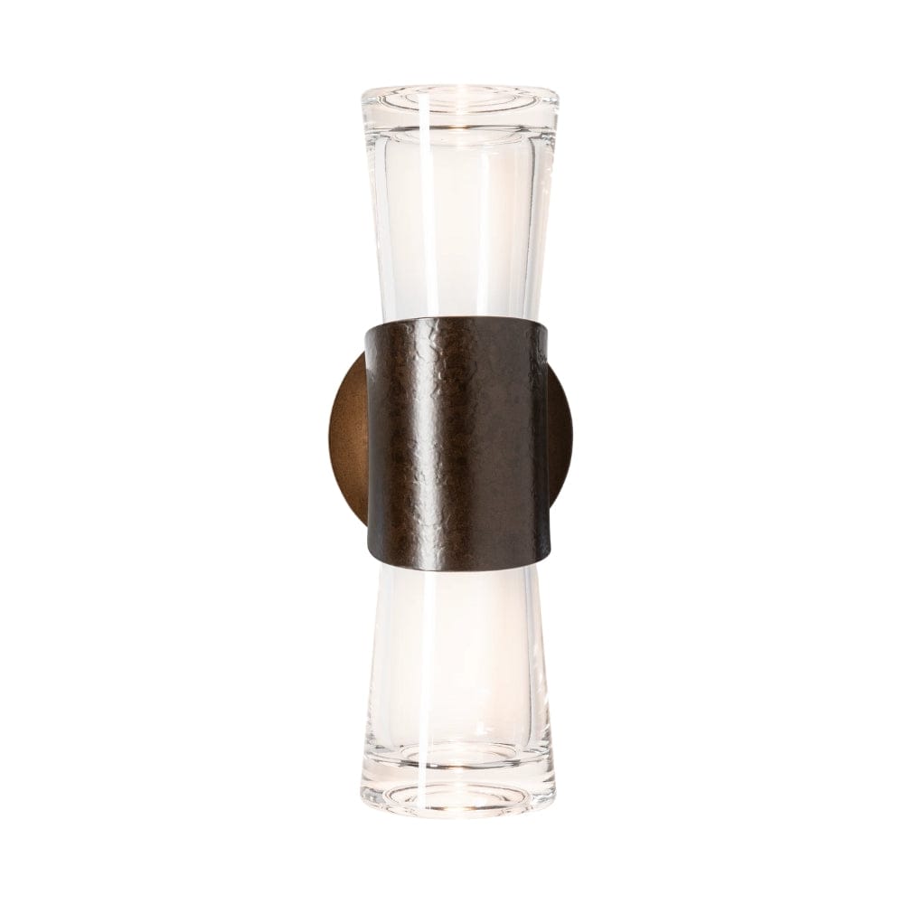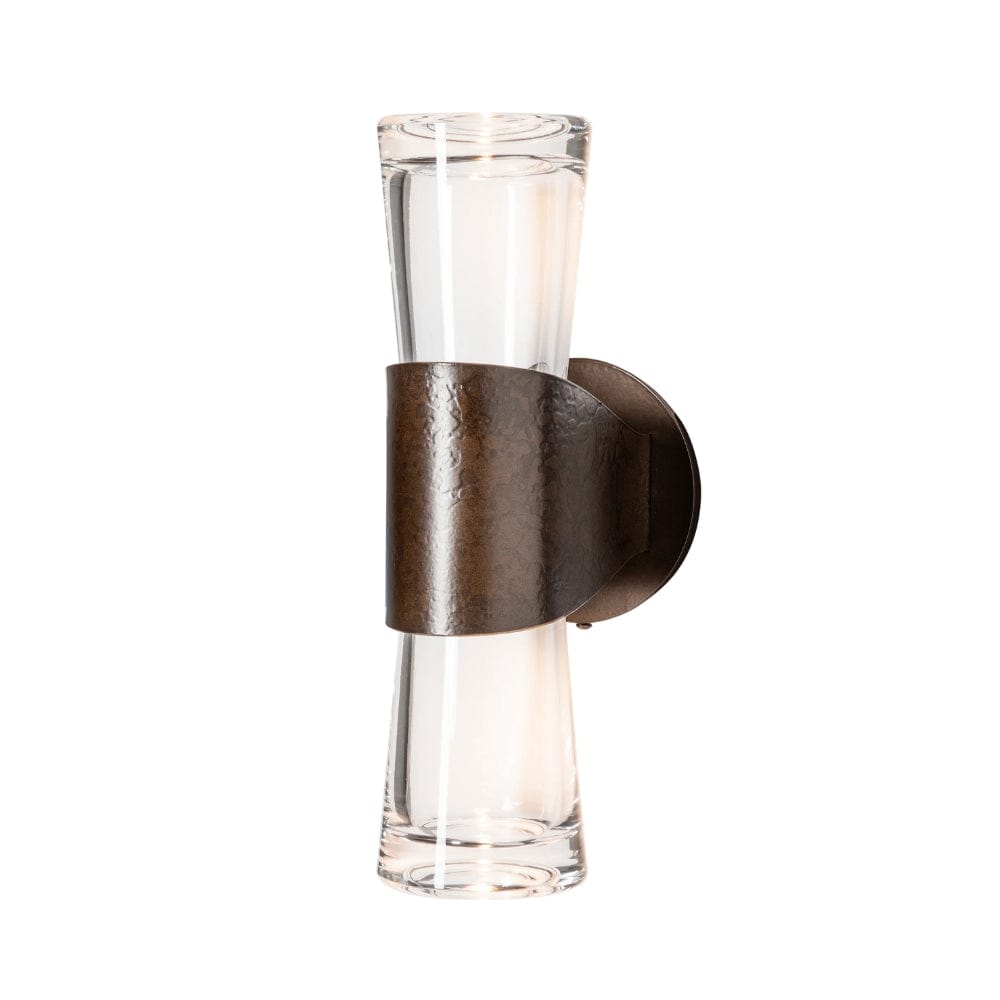 Wrapped in a warm embrace, the Bellis 2-Light wall sconce's steel features the signature of the fires of the forge. Each piece's texture is unique, like a fingerprint, and offered in any of our standard interior finishes. Up- and downlight from the thick, clear glass of the Bellis provides ample clarity to its space.
