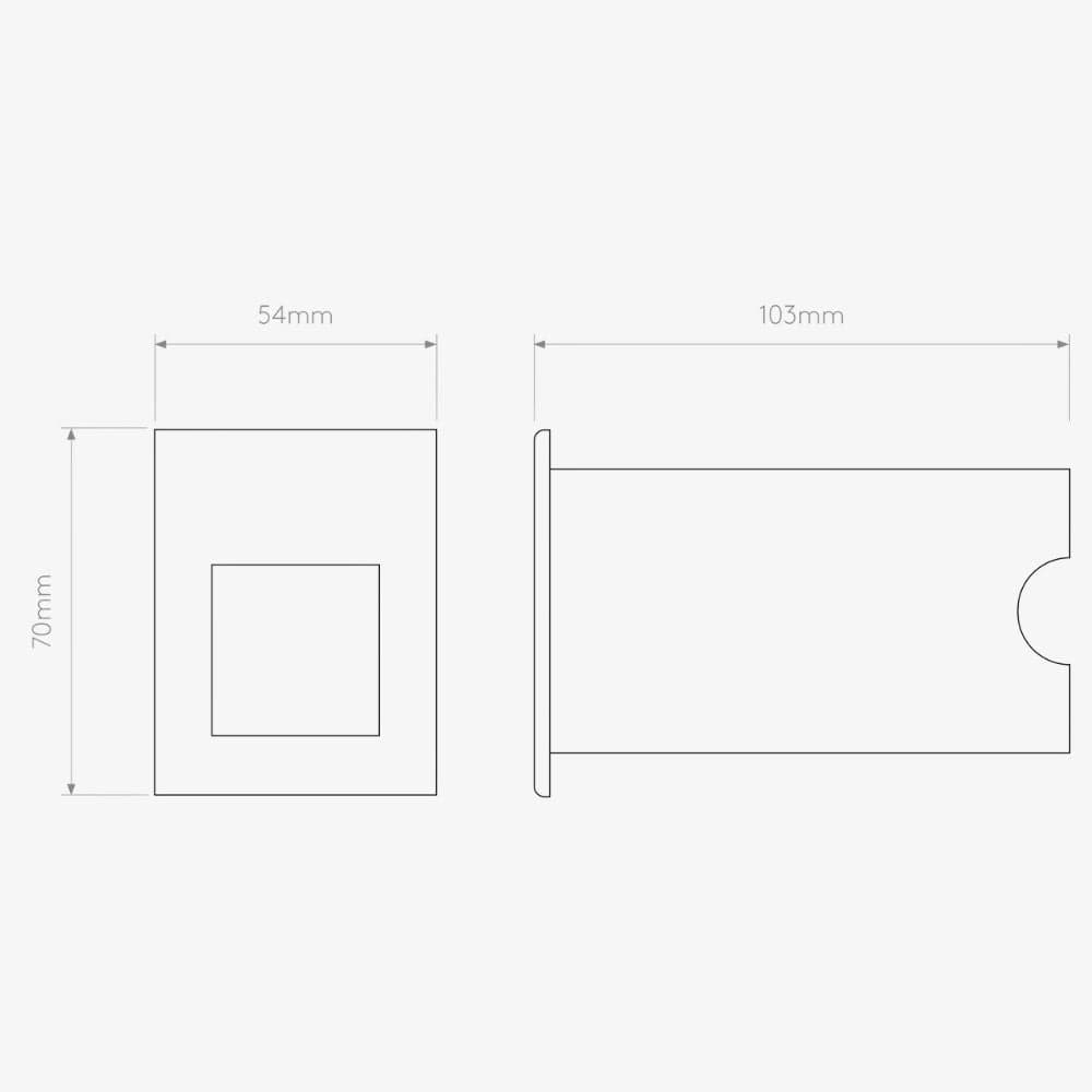 Dimensions H70mm x W54mm x D103mm Cut Out Hole: L55mm x W42mm Recess Depth: 100mm |