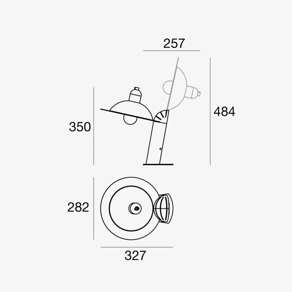 Body in glossy white, black, red polycarbonate in paste. Parabola in white painted aluminium. Silver-domed 7W 2700K E27 LED bulb included. By fixing the body to the steel base (included), Lampiatta transforms into a table lamp.