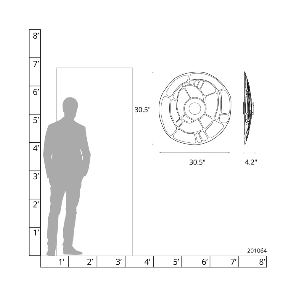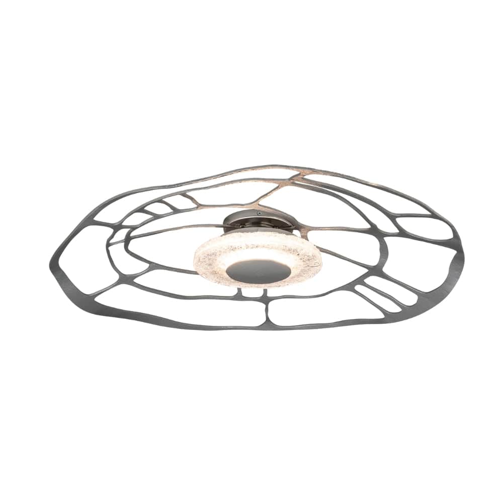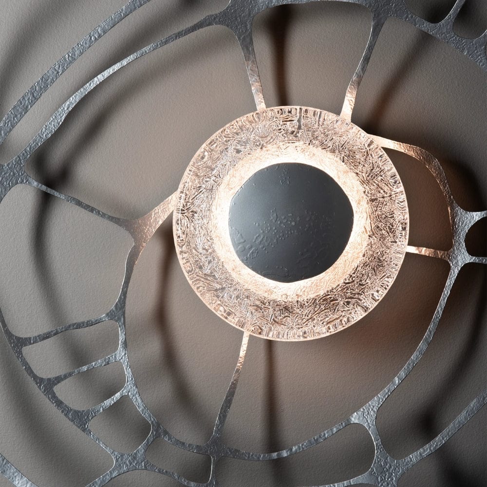 The depth of the gently curved, heavy handmade bubble glass gives a glimpse of the richness of this elegant wall sconce. The Lustra's central metal disc gives a concave "saucer" effect, drawing the eye to the unique and stunning glass surround.
