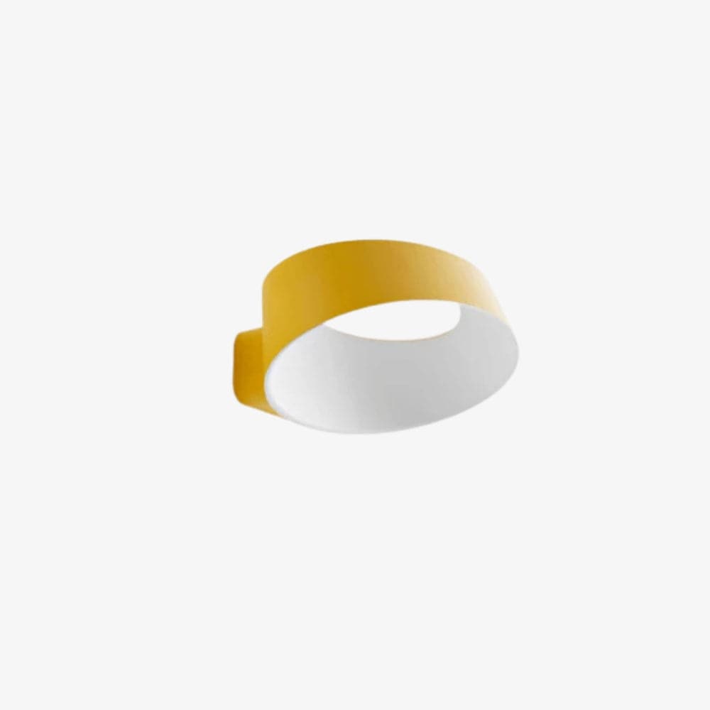 Lampshade in two-tone polyurethane. Available external colours: white, black, yellow, light blue. White interior. Diffuser in transparent laser micro engraved PMMA with OptiLight™ technology. Ring in white painted aluminium, dimmable topLED source. Mount in white painted metal.