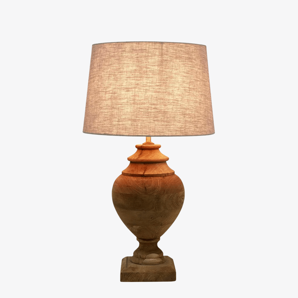 Set the stage for a symphony of style with our Small Amphora Table Lamp Base in Dark Natural, a captivating fusion of classical design and rustic charm. Crafted from turned mango wood, its banded urn shape exudes sophistication, while the tapered square pedestal adds a modern twist. Whether adorning your bedside table for a touch of refined allure or gracing your living room sideboard as a conversation piece, this lamp promises to elevate any corner with its understated grace and warm glow.