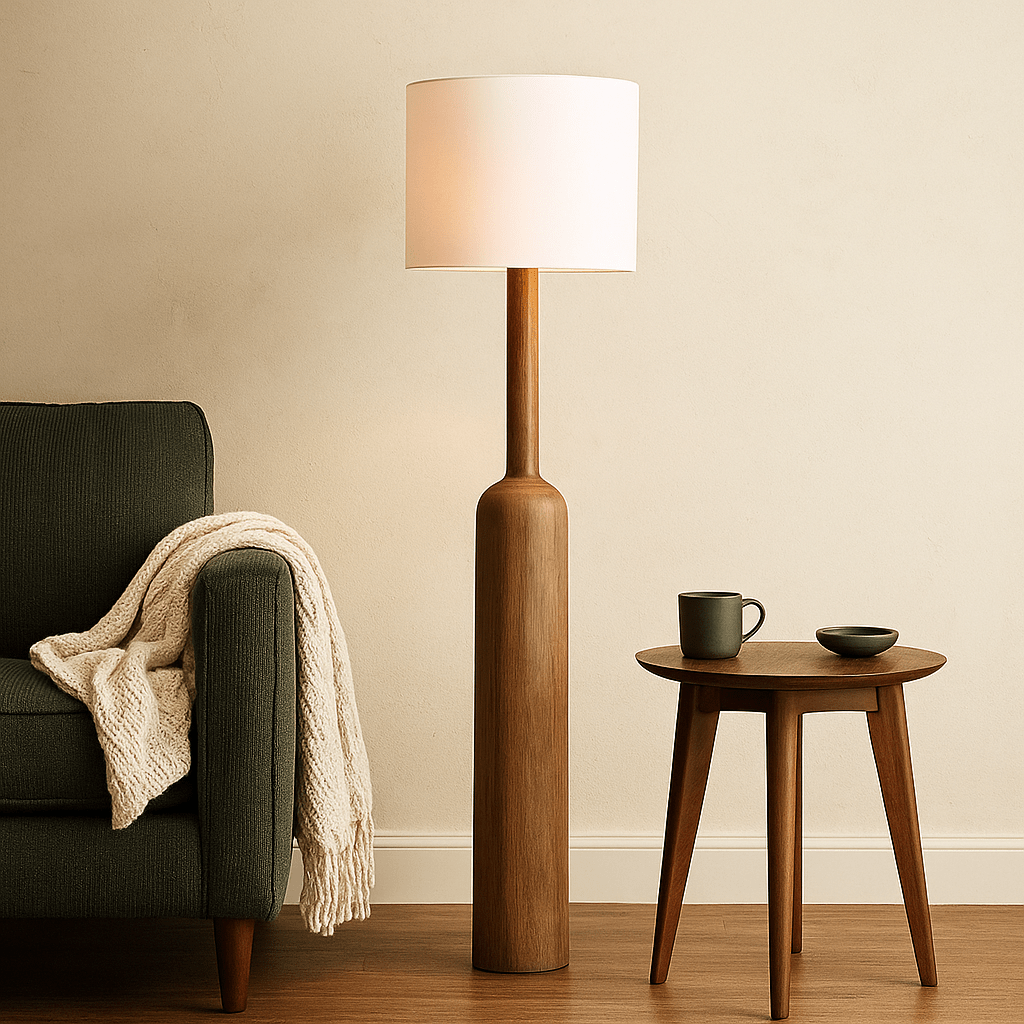 Turned from solid timber, the Flask Floor lamp series brings a grounded statement to any space. Celebrating the natural qualities of solid timber, constructed from solid mango wood and finished in a rich saddle stain. Natural variation in tone tone and grain are expected and to be celebrated as part of the charm of this striking timber form. Complete with Java drum shade.