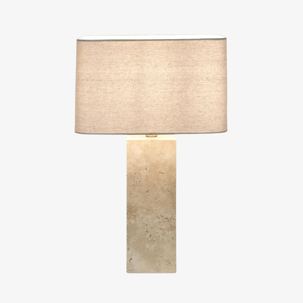 Imperial Travertine Table Lamp with Natural Linen Shade