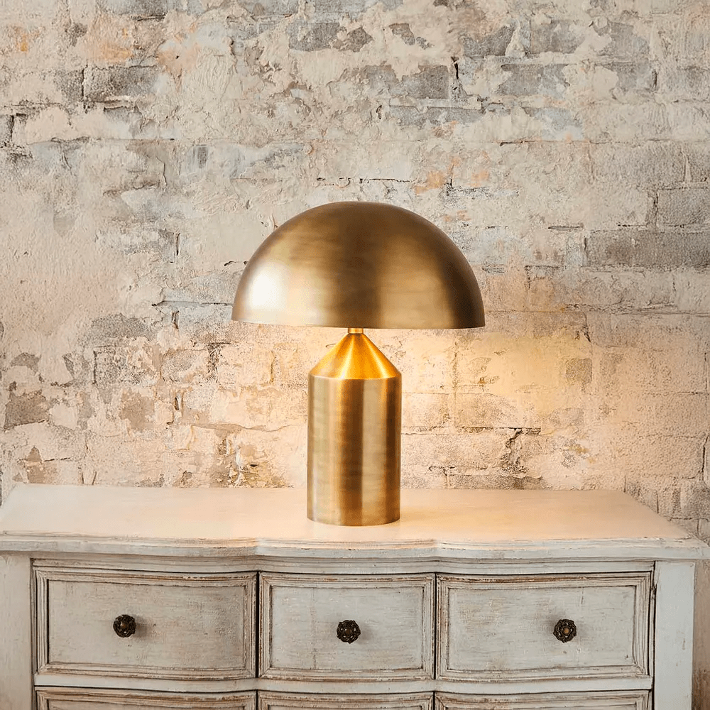 Our Jacaranda is timeless modern table lamp features metal dome shade on stylish simple base which excellent choice for desks, living room, offices and work spaces. This mushroom-like lamp has light directly downwards to create soft and comfortable illumination. A modern take on a classic design, the Jacaranda Lamp provides home with the most sophisticated style and will be sure to turn heads. Four colours are available: brass, shiny nickel, black and white.