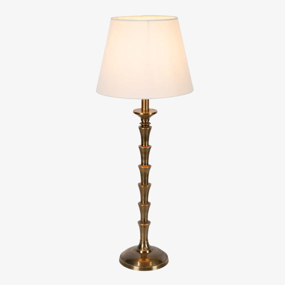 Timeless elegance meets regal charm with our Jordan Table Lamp Base, a beacon of sophistication in the form of a tiered candlestick-style in antique brass. Fit for the halls of royalty or the sanctuaries of style seekers, this lamp base exudes an air of classic elegance that reigns supreme. It doesn't just light up a room, it transforms even the most modest shades into symbols of refinement and luxury. Perfect for adorning elegant bedside tables, illuminating refined study desks, or adding a touch of regal charm to sophisticated living room consoles.