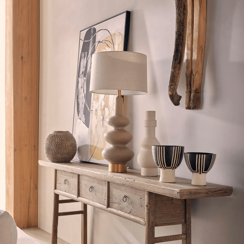 Linden Sandstone Table Lamp & Linen Shade crafted from CERAMIC,METAL, offering a versatile charm. This piece is suitable for various settings.