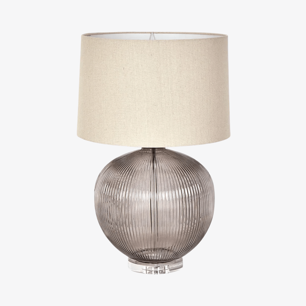 Linden Smoke Glass Table Lamp with Natural Linen Shade