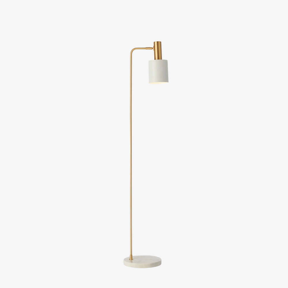 The Mahala Floor Lamp comes in Satin Brass with a White Marble base and adjustable Satin White shade. Elegant and understated.