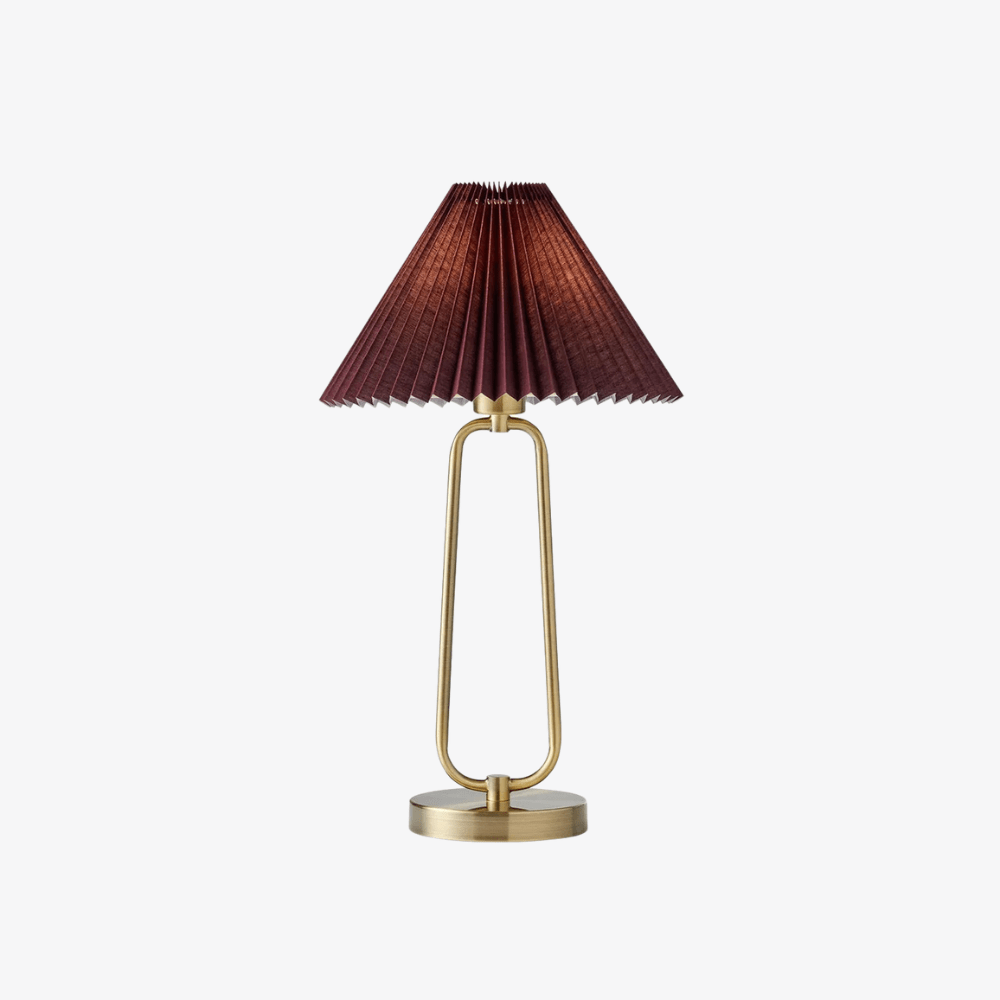 The Nika Table Lamp comes with an Antique Brass base and a pleated shade in Fig. The design’s simplified appearance beautifully echoes mid century style.