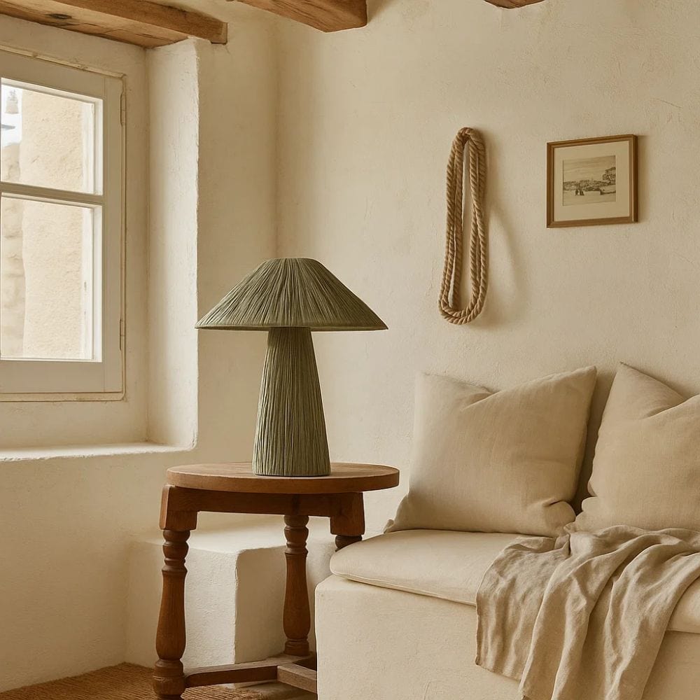 With a frame crafted from iron and a base and round shade handmade from woven raffia, our Ourea table lamp was inspired by the style and textures of the Greek Islands and celebrates natural materials and quality craftsmanship. Sculptural and bold by design, the Ourea promises to infuse your home with bold design and a soft, warm light. Place this lamp atop a side table in your living space or on a console table amongst a cluster of precious trinkets and framed photographs.