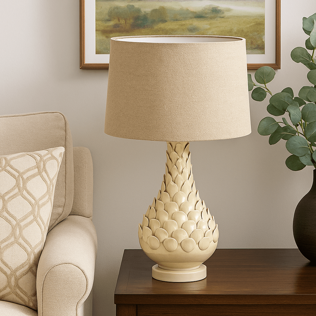 Petal Ceramic Table Lamp with Natural Linen Shade