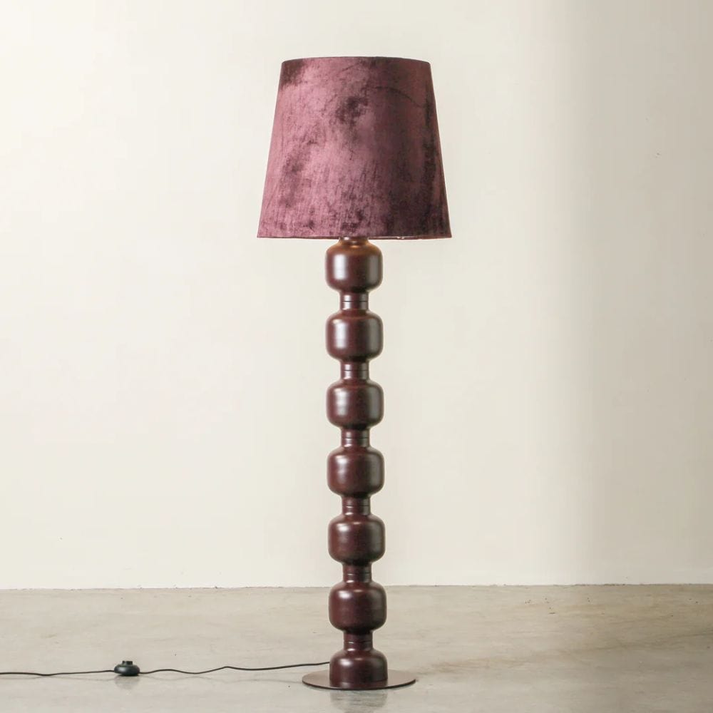 Architectural yet organic, the Spool Floor Lamp is defined by its stacked beaded form—evocative of a sculptural totem or chain of forms rising from the floor. Available in two finishes—Nougat and Plum—the lamp’s columnar silhouette is topped with a subtly tapered fabric shade in a warm, neutral tone. Its vertical form makes a bold statement, anchoring larger spaces with structure and visual weight. With its softened palette and rhythmic profile, Spool serves as both lighting and furniture—bringing scale, movement, and material presence to the interior.