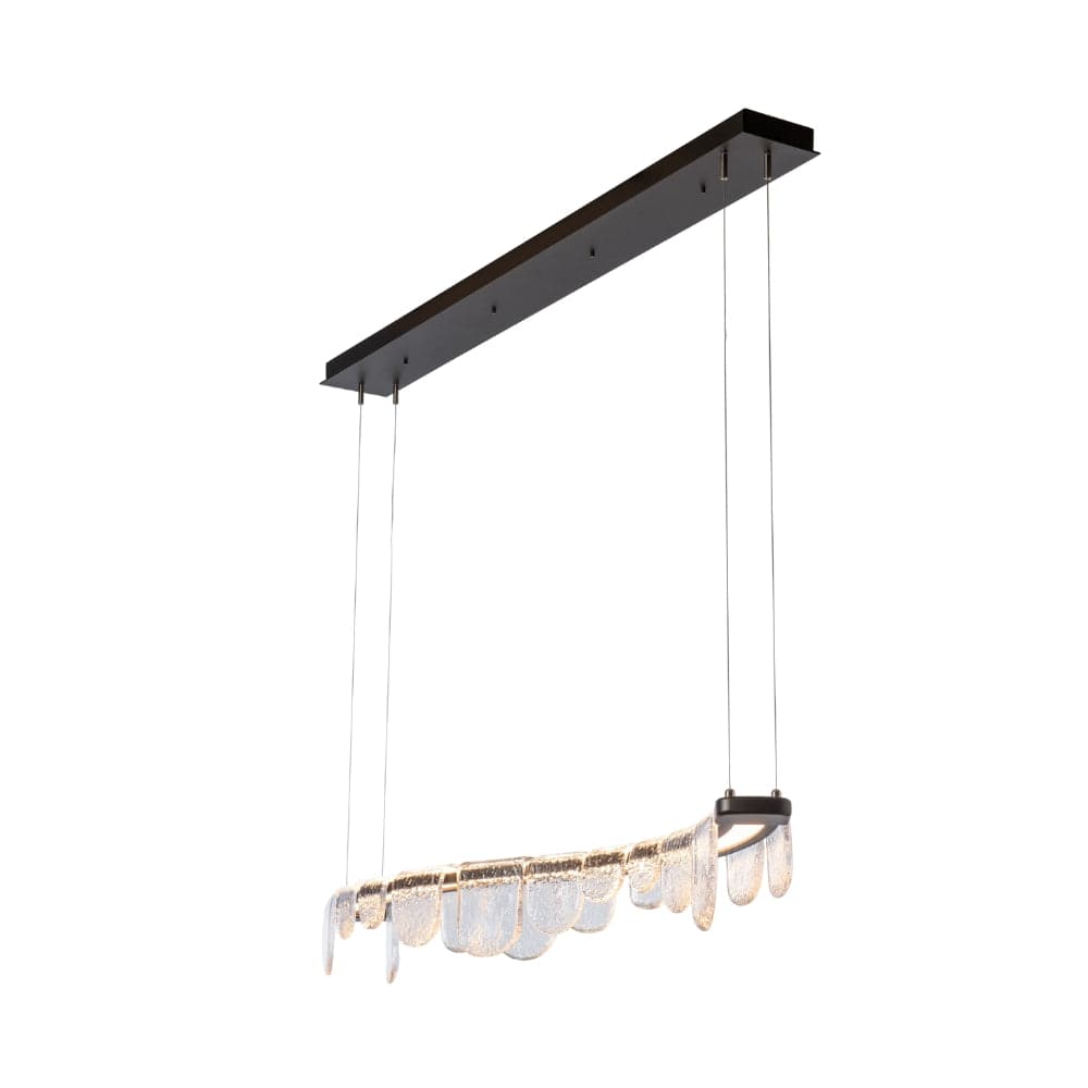 Inspired by the cold icy streams of Vermont that are adorned with ice covered rocks and frozen boulders, this riverbed of light with meandering artisan glass is stunning. Featuring a curved LED light-guide platform, the Riverbed Pendant’s unique, clear, textured poured glass has been formed and shaped like frozen stones along the river’s edge by our local partner, AO Glass, working with HF designer Andy Morter.