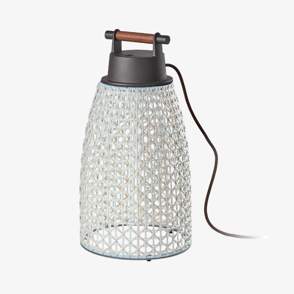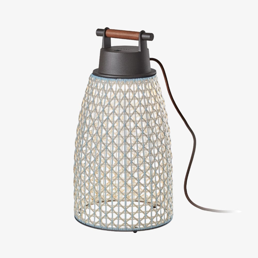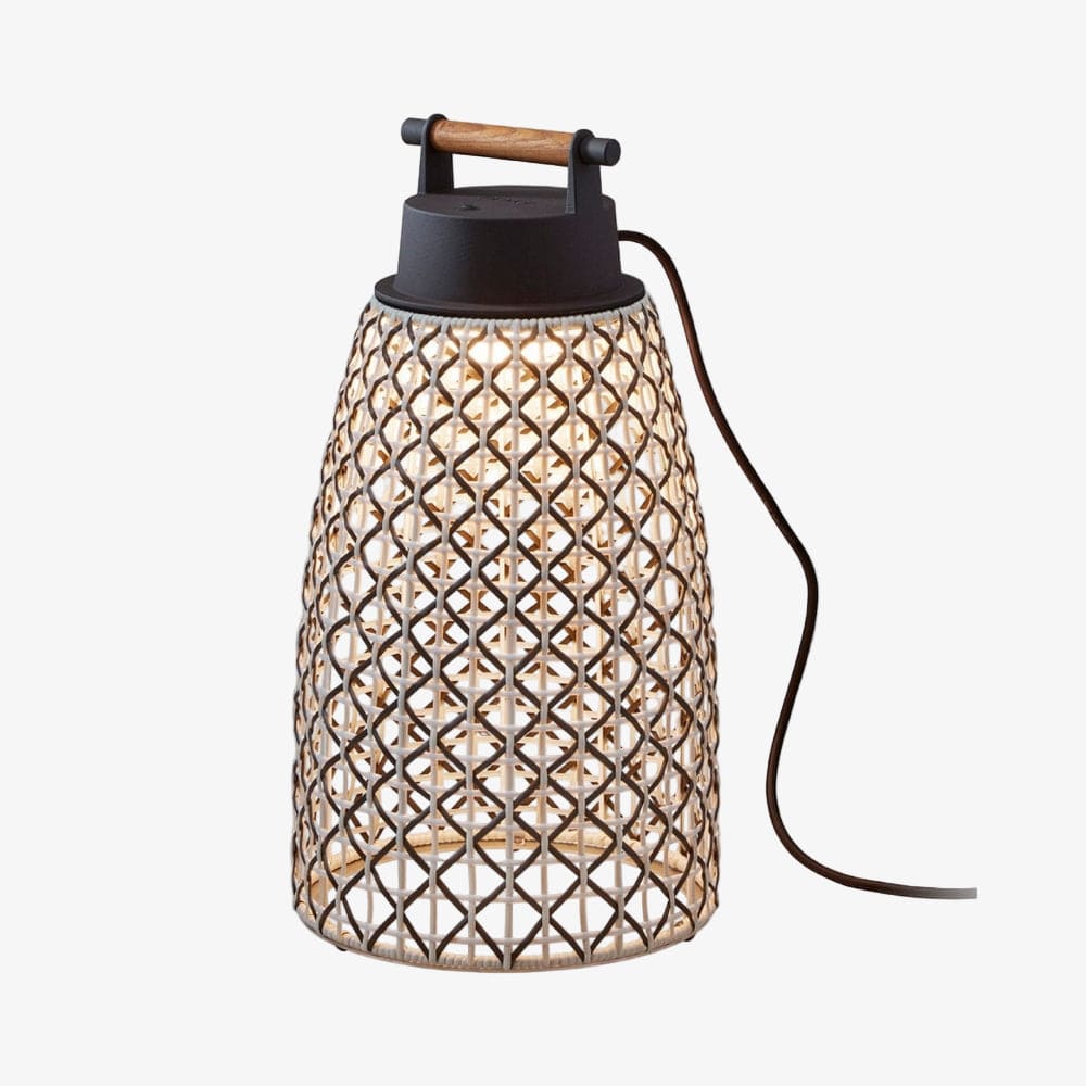 The design intent of the Nans collection was to highlight the craftsmanship of the lampshades and to explore different ways of weaving, by combining different colours and formats to create a true Mediterranean style. Available in various sizes with either Beige, Brown or Red shades featuring coastal Blue accents and graphite brown metal ware.