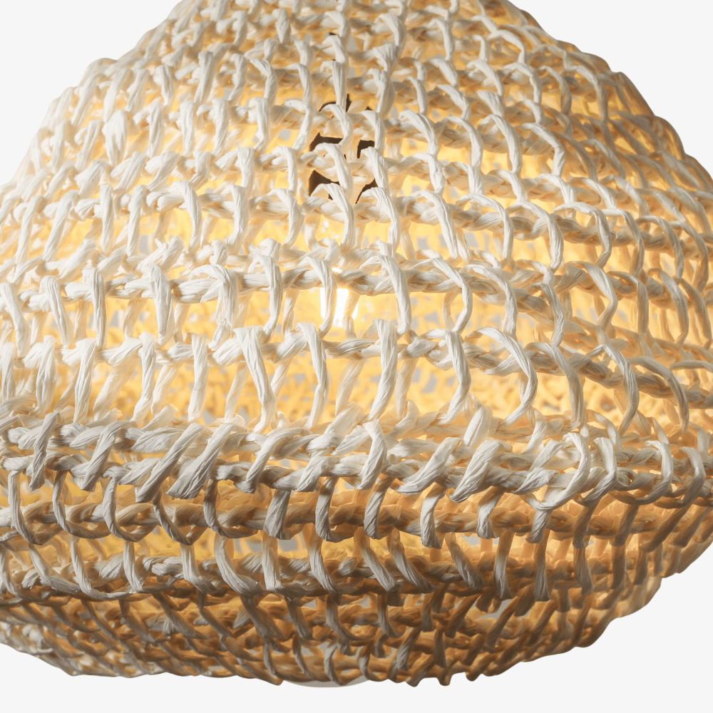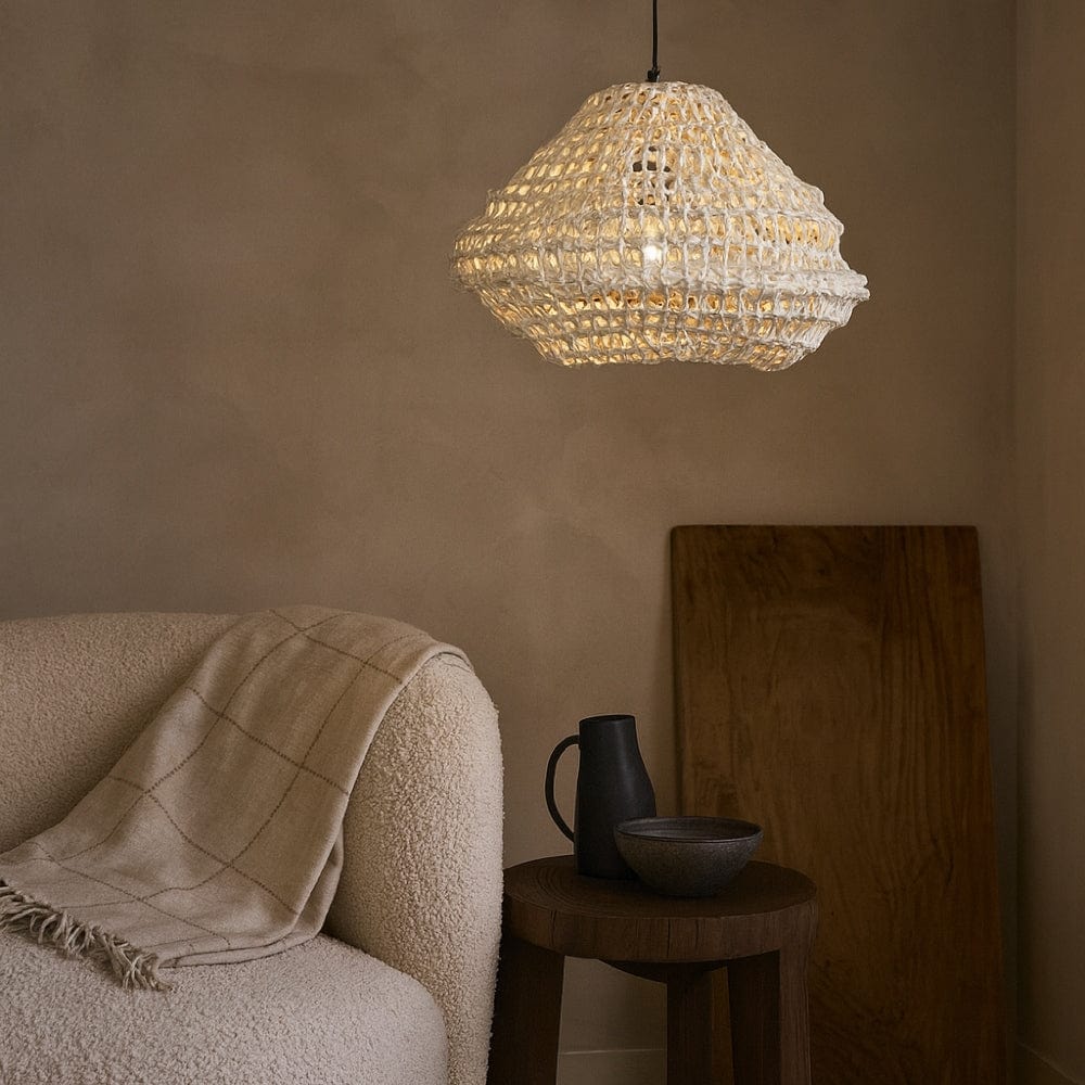Skye floats — rounded and cloud-like, with the loose symmetry of something found in nature. This pendant blurs the line between sculpture and function, inviting a sense of calm wherever it hangs. Beautiful above a dining setting or as a focal point in a high-ceilinged stairwell or bedroom. Pair it with curved sofas, boucle textures, or pale timber to enhance its dreamy, organic form.