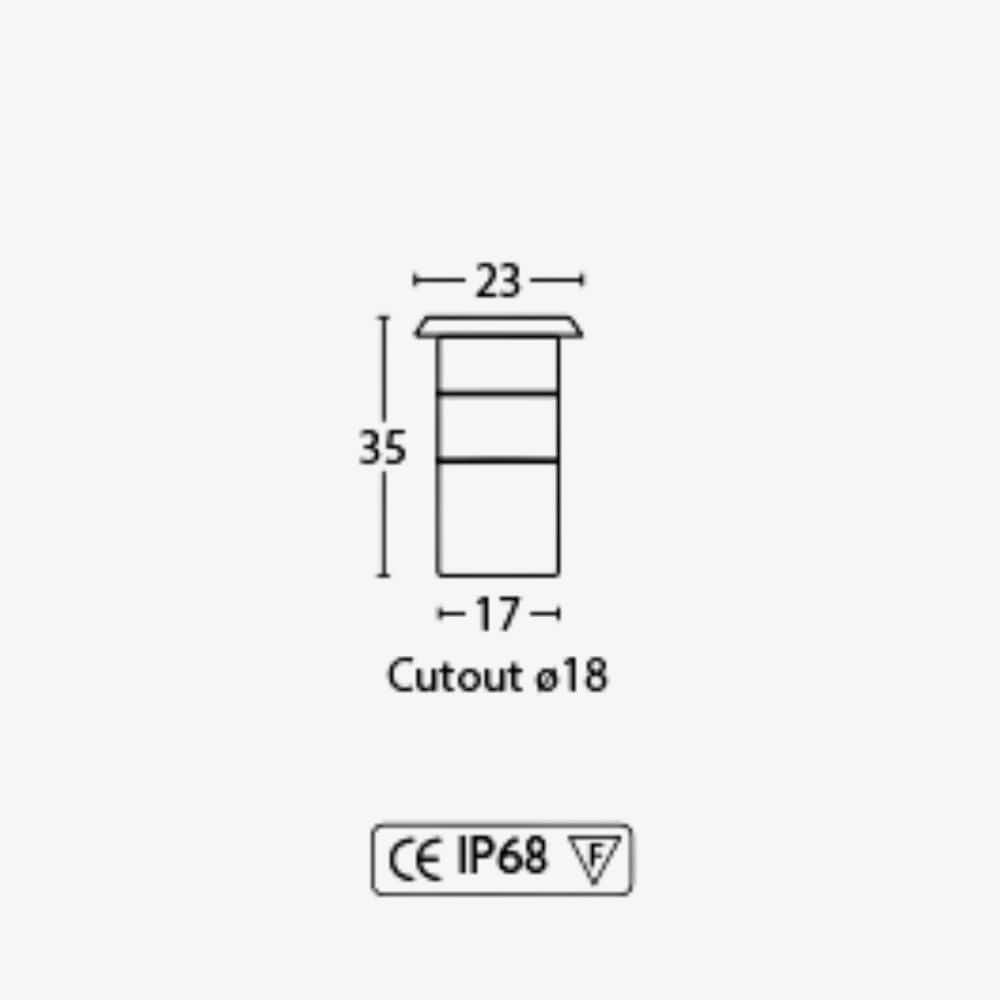 | Dimensions Ø23mm x H35mm Cutout - 18mm |