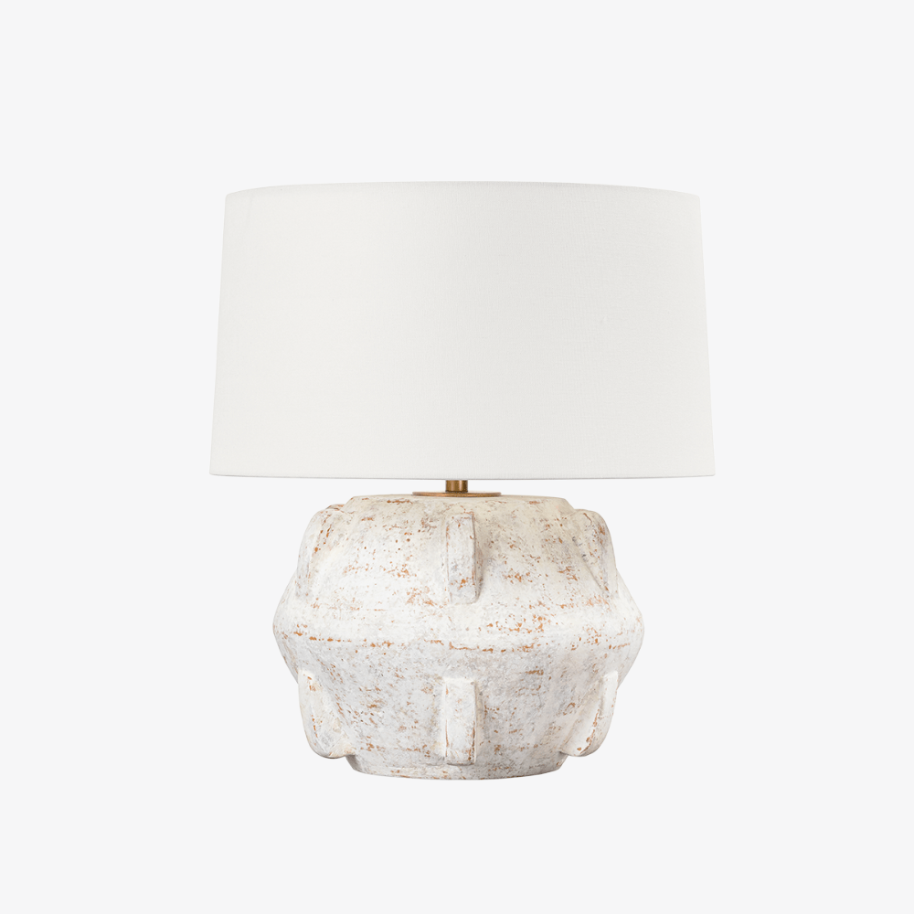 Finishes Patina Brass/Ceramic Whitewash Terracotta w/ Off White Linen Shade |